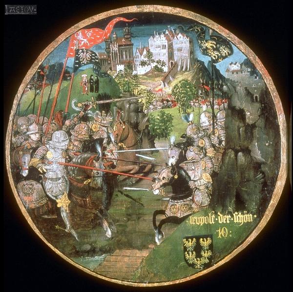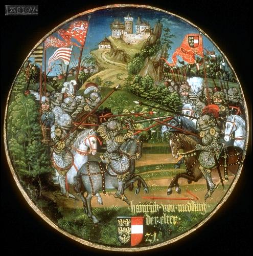Der Babenberger Herzog Heinrich von Mödling, der Ältere (bis 1223) in der Schlacht gegen die Mähren vor der Burg Mödling |