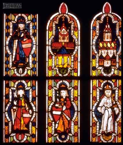 Der Babenberger Markgraf Leopold III., der Heilige (1095-1136) mit seinen 3 Söhnen vor seinen Stiften | |